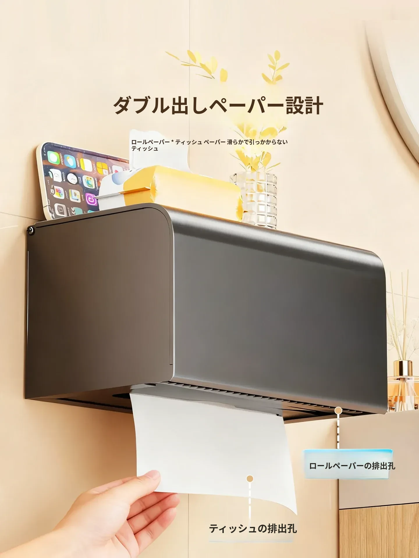 おしゃれな壁掛けトイレットペーパーボックス&洗顔タオル収納ボックス - 高級感溢れるクリエイティブなティッシュホルダーで、トイレをスッキリ整理!