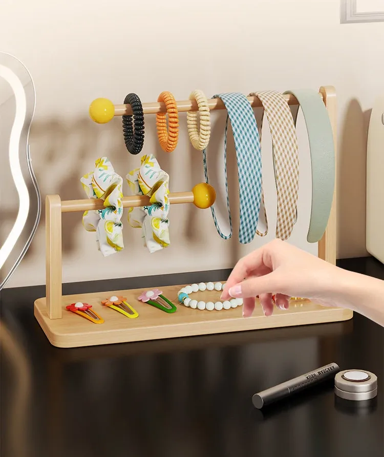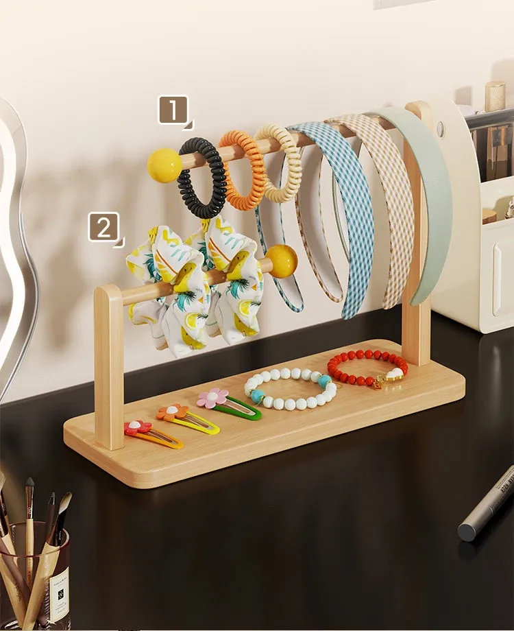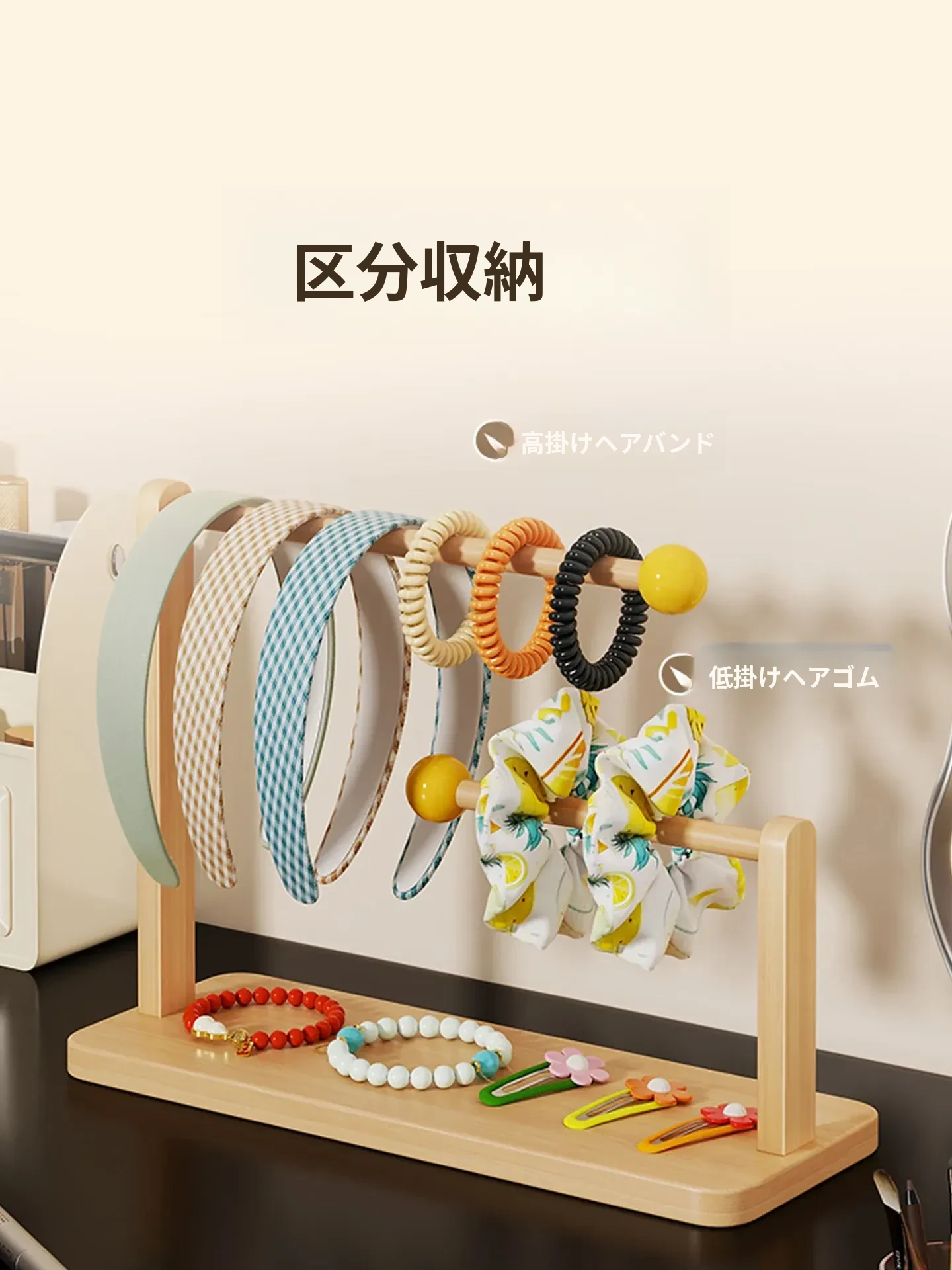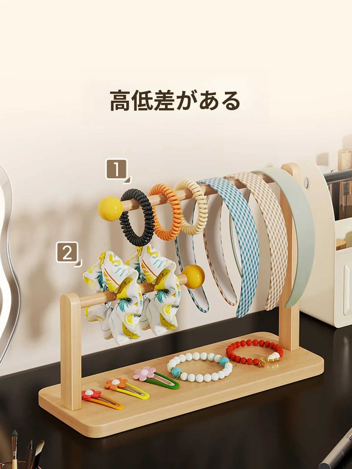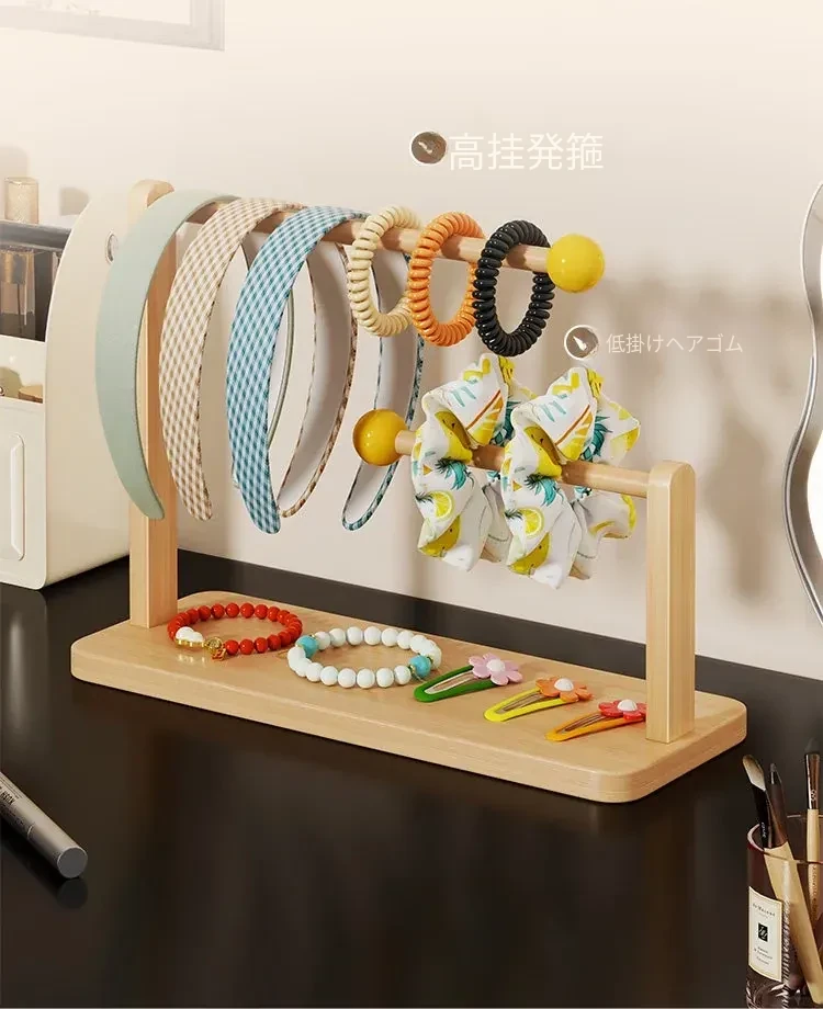 魅力溢れる木製ヘアアクセサリー収納スタンド!デスク上でスッキリ整理できるヘアバンド・ヘアクリップディスプレイラック。子供用ヘアゴムもお洒落に収納可能!お部屋を可愛く彩る必見アイテム!