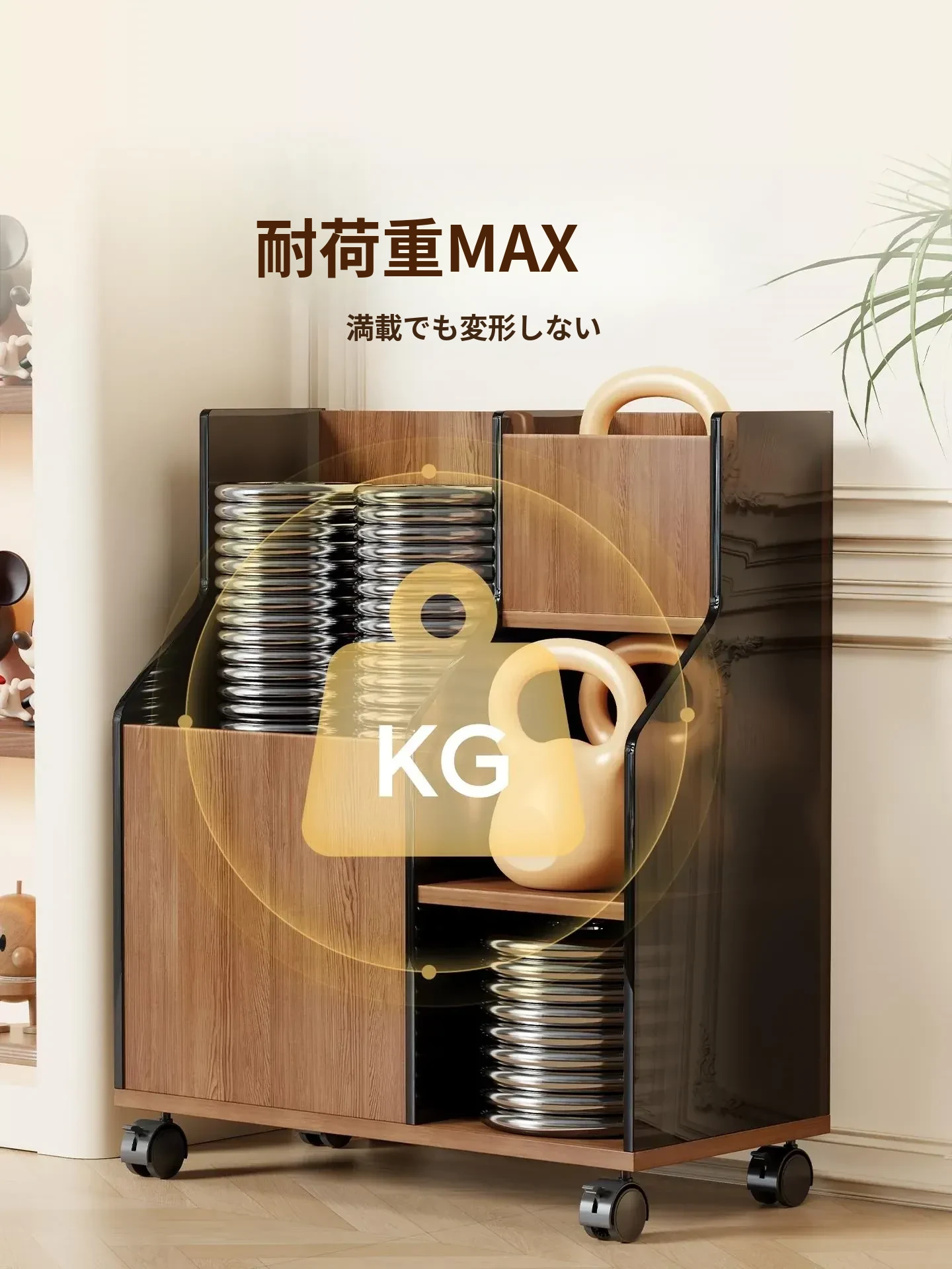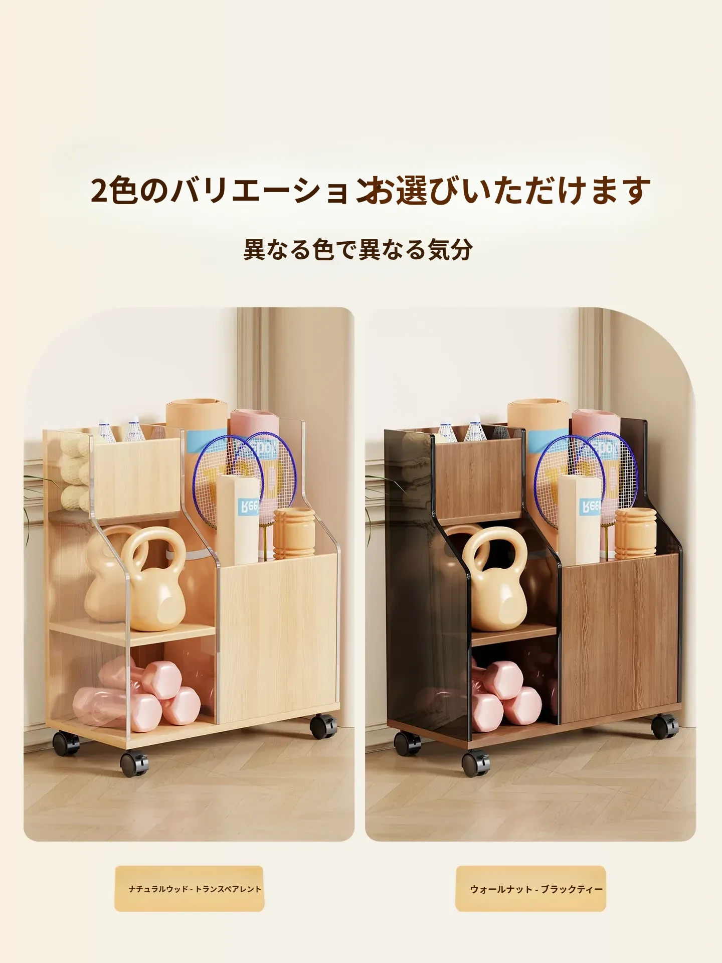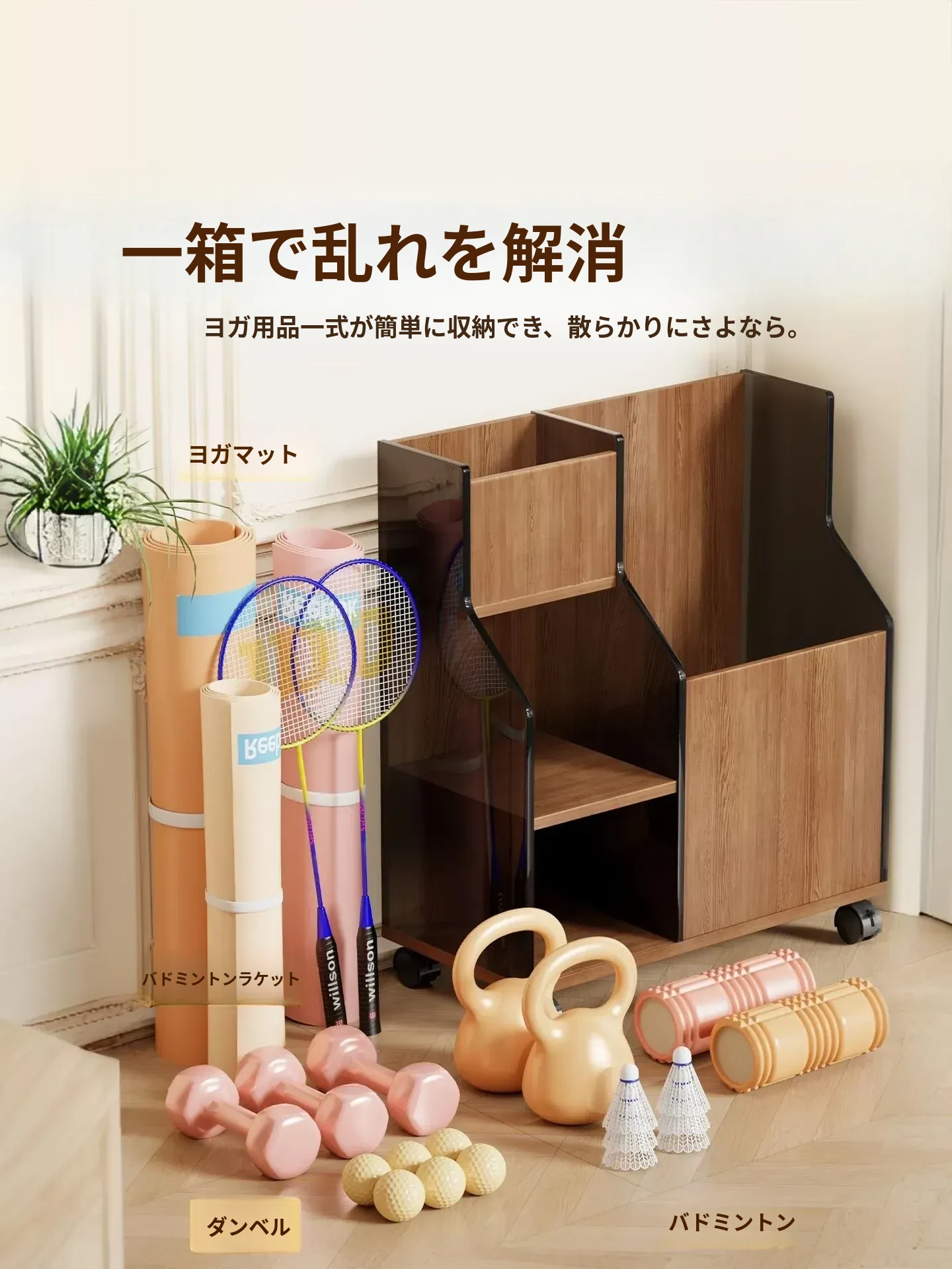 ヨガマット収納バスケット 車輪付き 家庭用フィットネス器具 スリム収納ラック スポーツ用品 移動可能な便利アイテム!収納力抜群で、スペースを有効活用!あなたのトレーニングをもっと快適に!