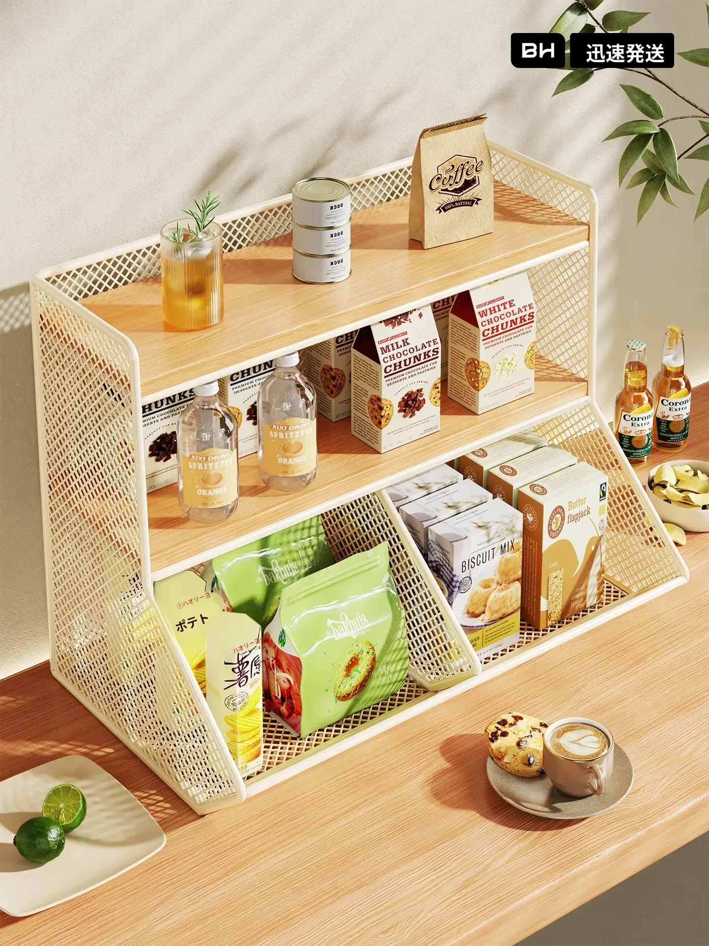 キッチンのデスクオーガナイザー 多機能 収納棚 - 食卓やテーブルをスッキリ整理!スナックやティーバッグ、水筒もすっきり収納できる便利なアイテム!