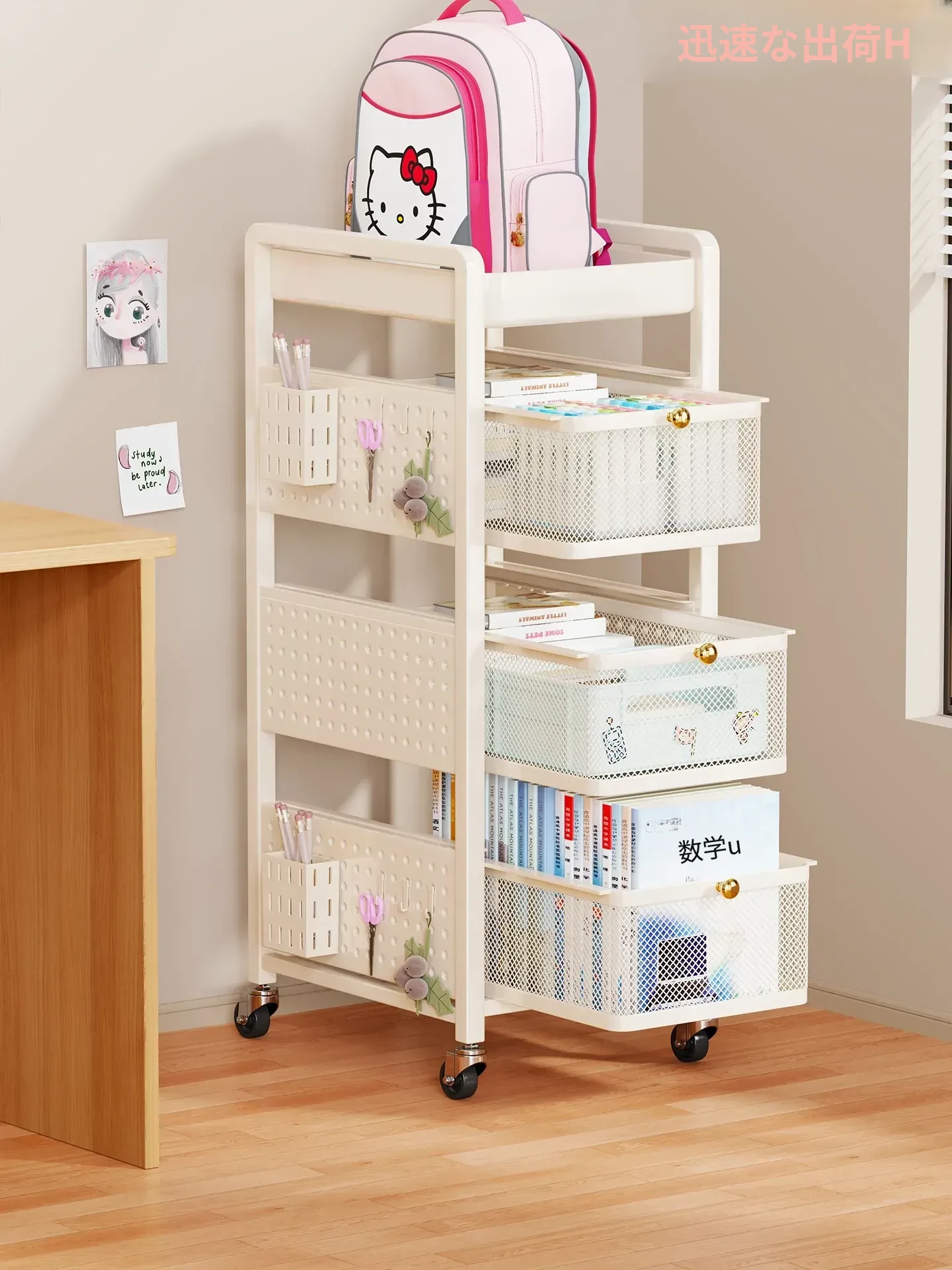 教室やオフィスに最適!移動可能なデスク下収納ラック – 本やバッグをスマートに整理できる本収納カート。学生や働く人の必需品、スッキリとした空間を実現!