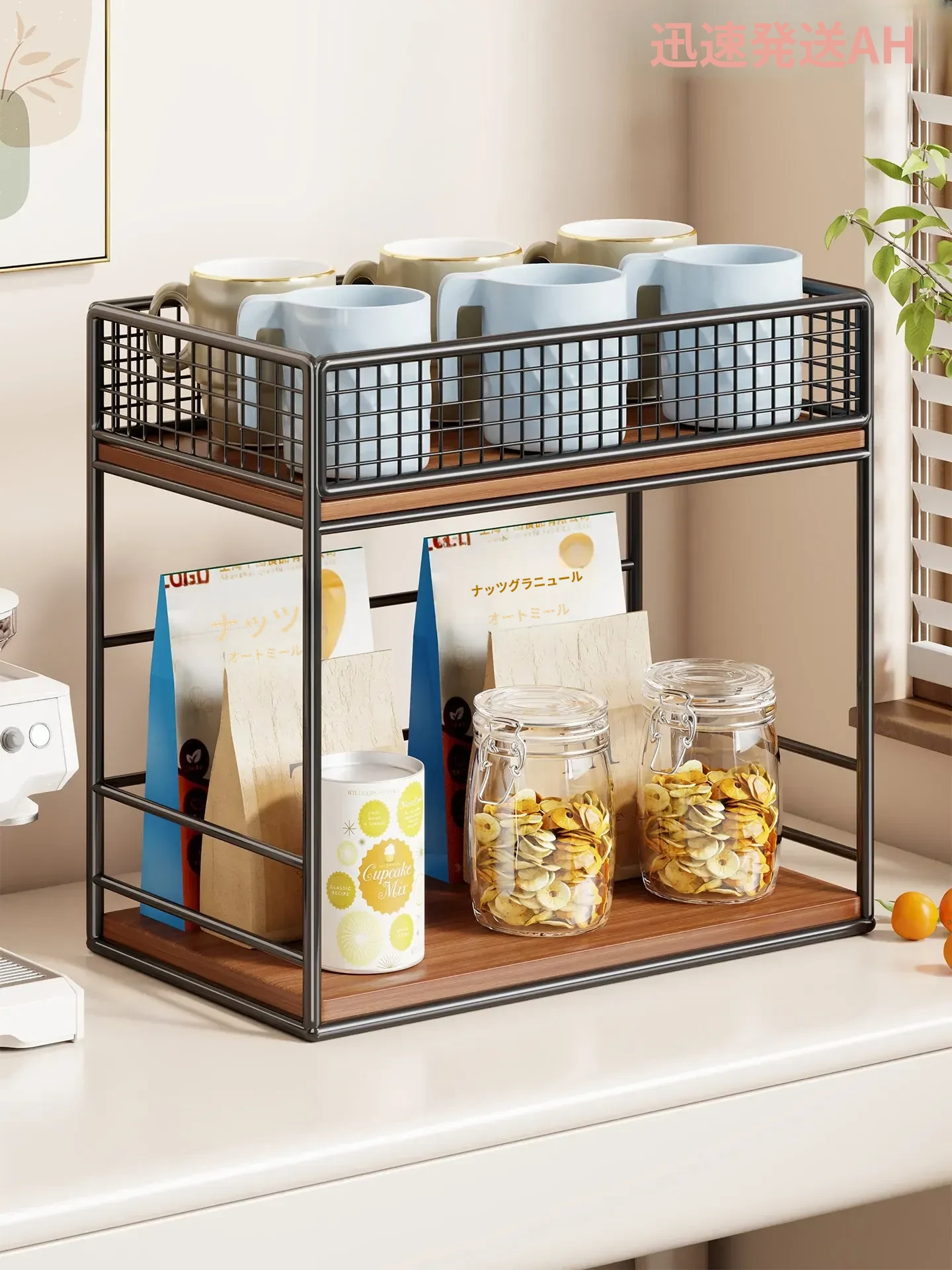 デスク上収納ラック 家庭用サイドボード テーブル上の水杯・ティーセット収納に最適!寝室やリビングでのスナック整理にも便利な多層式棚。生活空間をスッキリ整えて、毎日をもっと快適に!