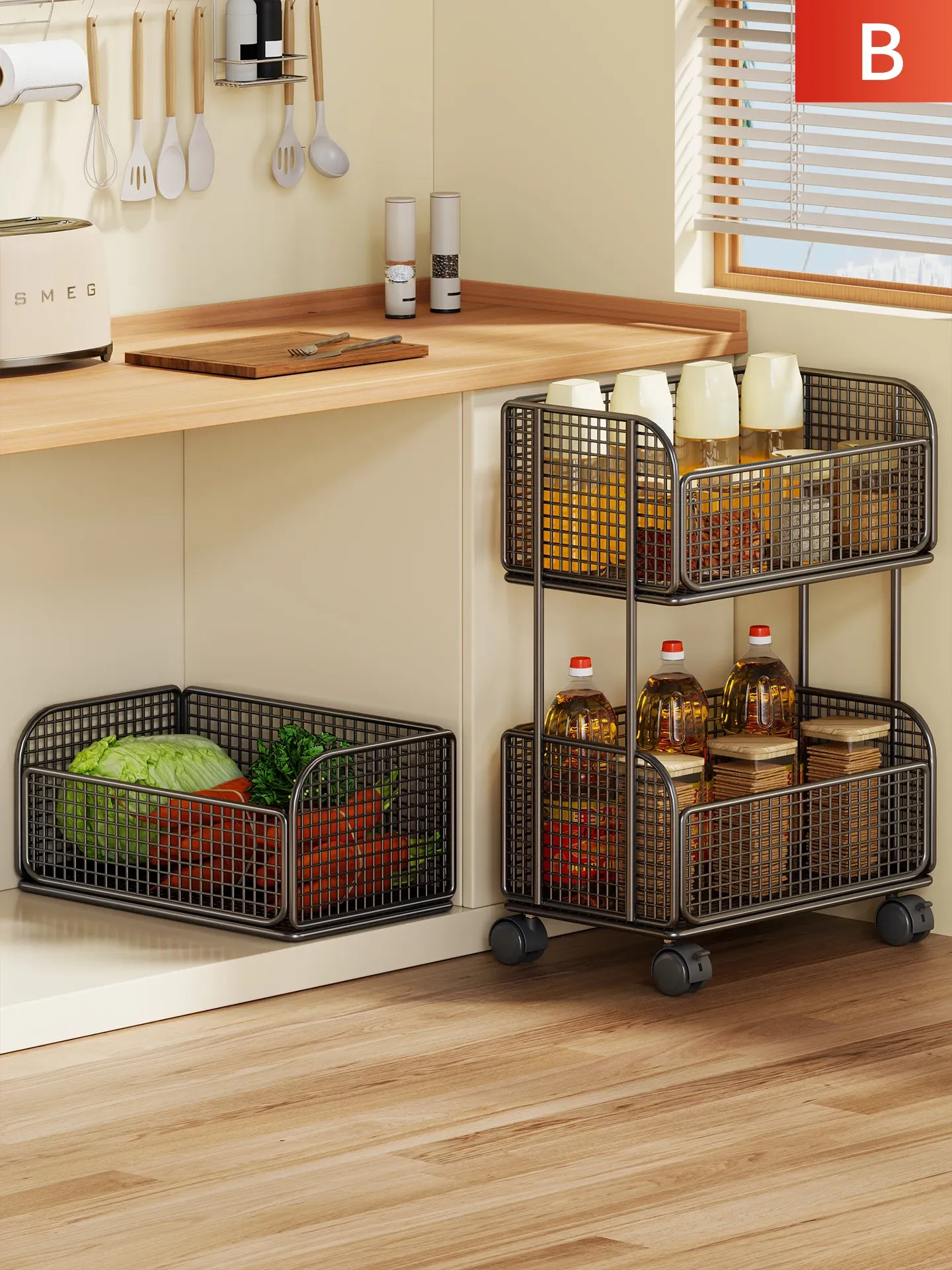 おしゃれなスナックキャリー!リビングにぴったりの移動式収納ラック。折りたたみ可能で、スペースを有効活用できる多層収納棚。家の中の整理整頓を楽しもう!