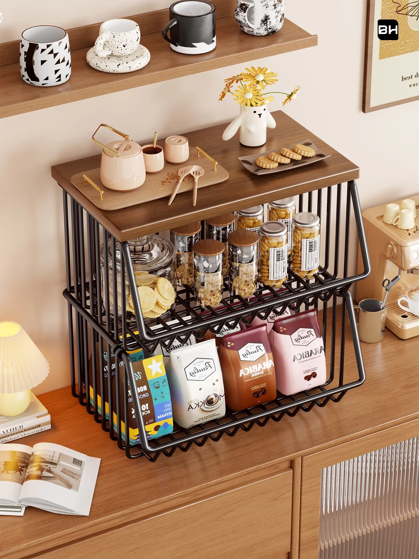 キッチン調味料ラック 多機能コーヒーメーカー引き出し整理棚 テーブル上の収納ラック 階層型デザインでスペースを有効活用!おしゃれで実用的なアイテムで、効率的なキッチンを実現します。