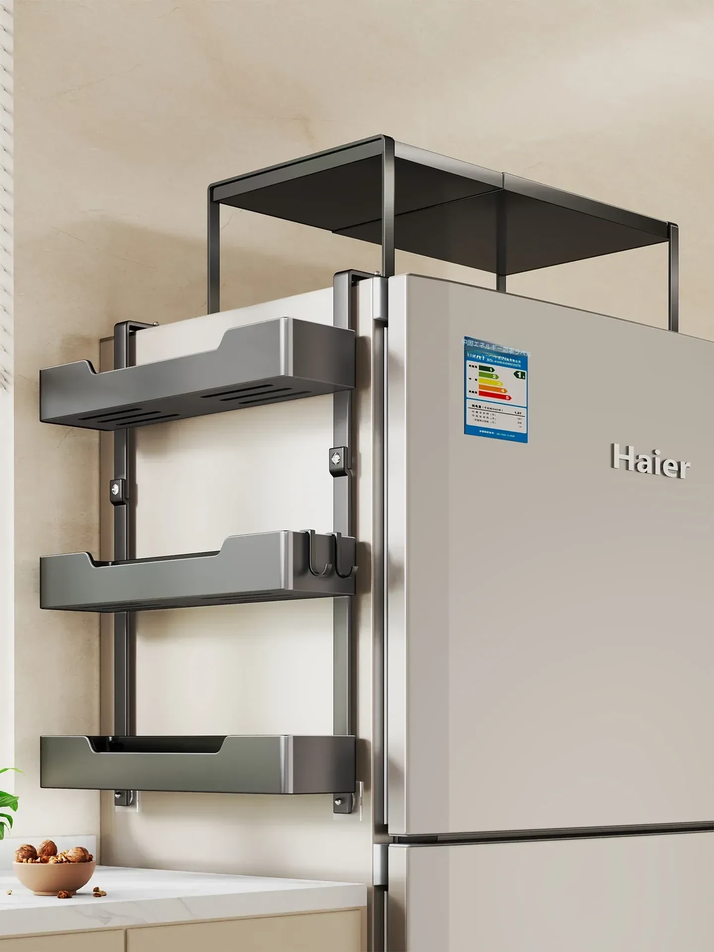 多機能キッチン用冷蔵庫サイド収納ラック - 調味料や小物をスマートに整理!多層ハンギングフックで、スペースを有効活用。整理整頓が簡単にできるサイドウォールハンガー!