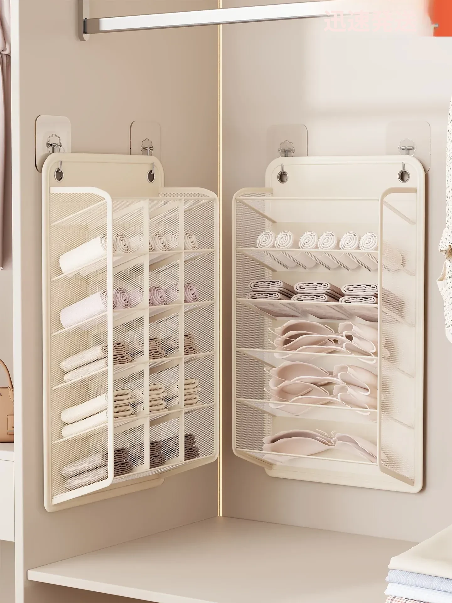 壁掛け式衣類収納ポケット - 丈夫で便利!穴を開けずに簡単取り付け、下着や靴下をすっきり整理。家のクローゼットがスッキリする収納の必需品!