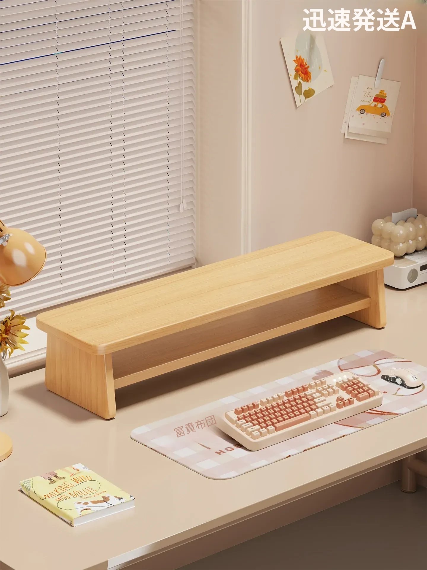 デスクトップモニター昇降スタンド - オフィスに最適!パソコンやノートパソコンを快適な高さに引き上げ、姿勢を改善し、作業効率をアップ!木製デザインでスタイリッシュな空間を演出。