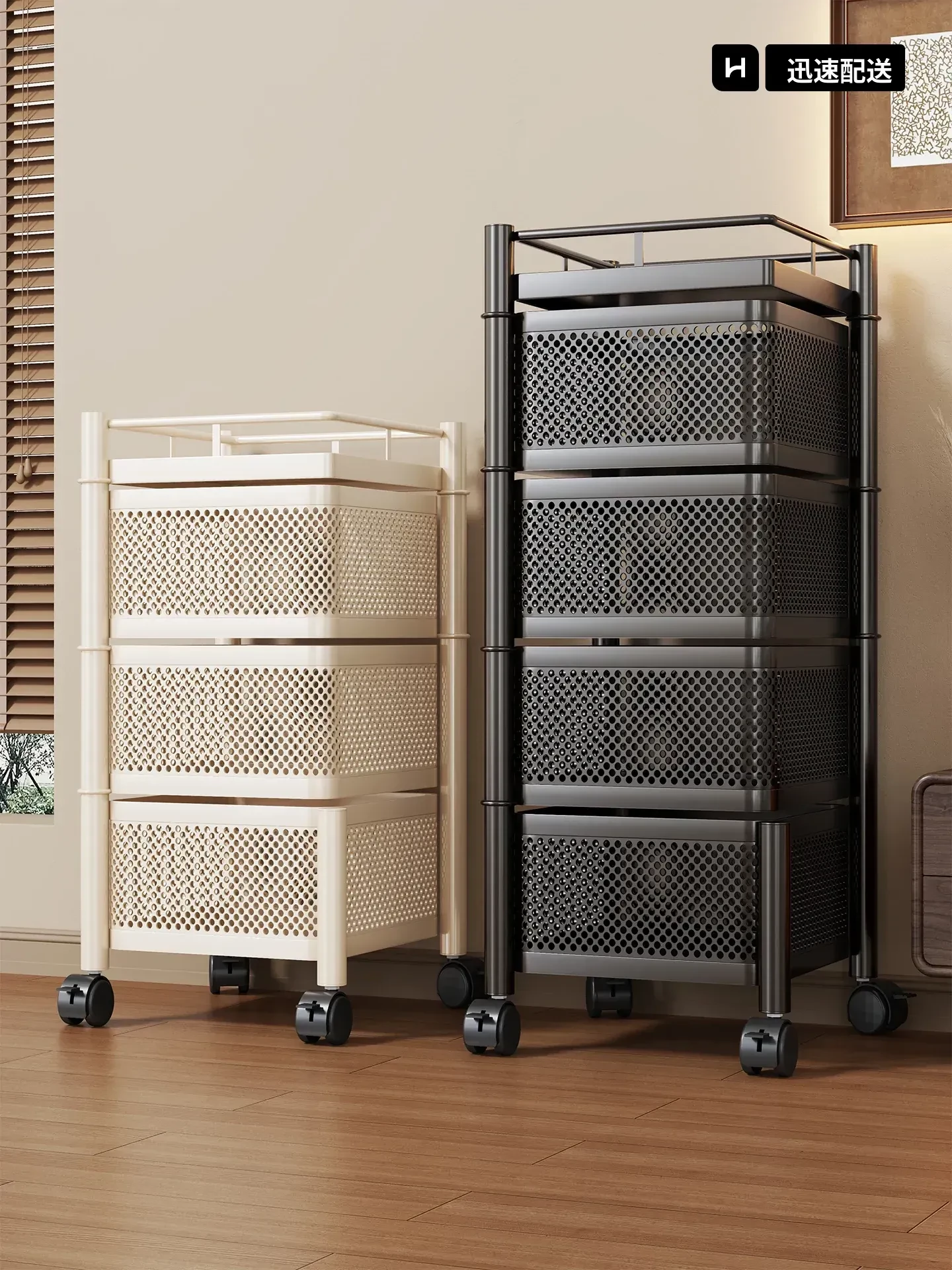 キッチン収納ラック・サイドボード用野菜・果物バスケット付き!リビングでも使える移動式・多層設計で水杯やスナックをスッキリ整理!便利でスタイリッシュな収納マジックを手に入れよう!