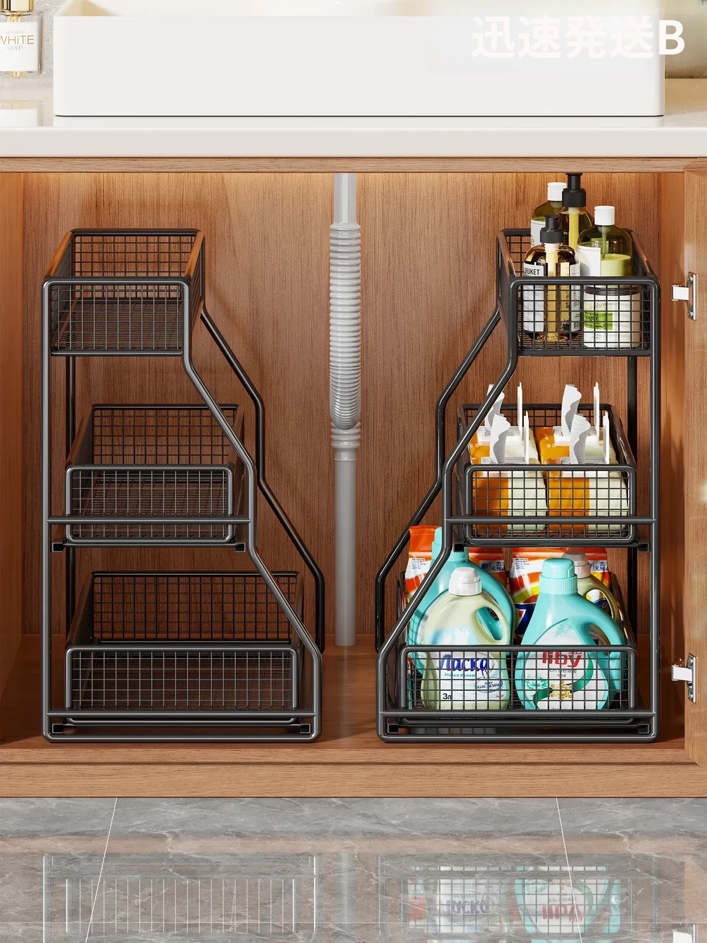 洗面台下収納ラック 引き出し式多層棚 お風呂のキャビネット用 便利な収納ボックス&バスケット 清潔感あふれるバスルームづくりに最適!