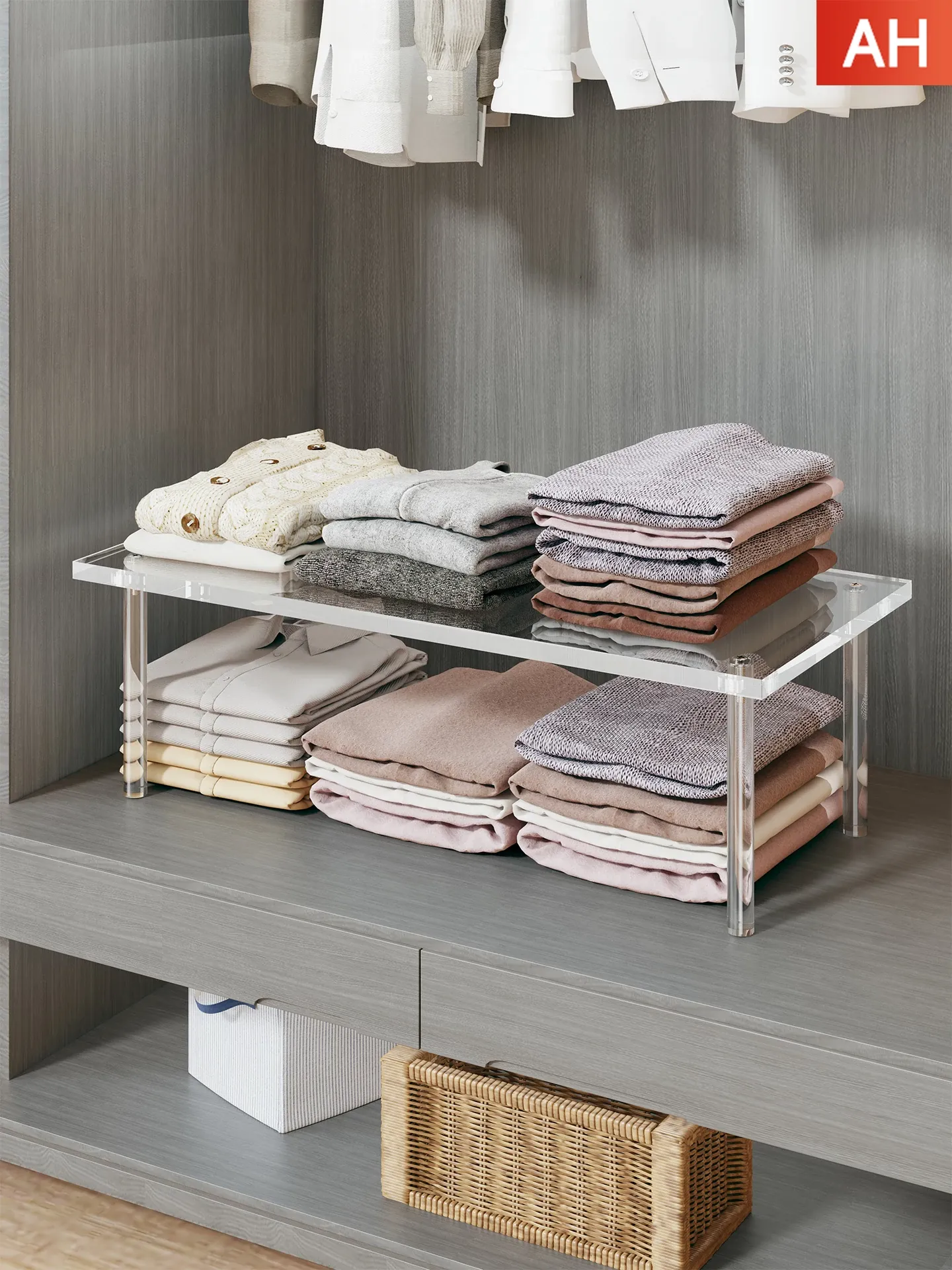 多機能アクリル収納ラック!衣類や靴をすっきり整理できる分層棚!透明デザインでおしゃれなキャビネットやデスクトップにぴったり。クローゼットや靴箱のスペースを有効活用して、すっきりとした空間を実現します!