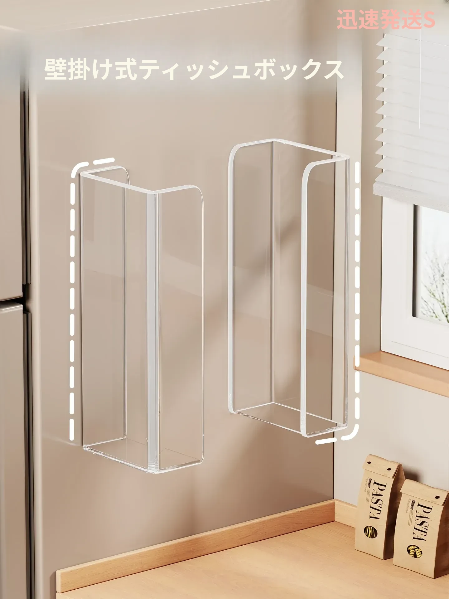 キッチンペーパーケース 壁掛け分離式 ウェットティッシュ収納ラック 透明で穴を開けずに取り付け可能!フェイスタオルやティッシュもスッキリ収納できる便利なアイテムです。おしゃれで機能的な収納で、キッチンをもっと快適に!