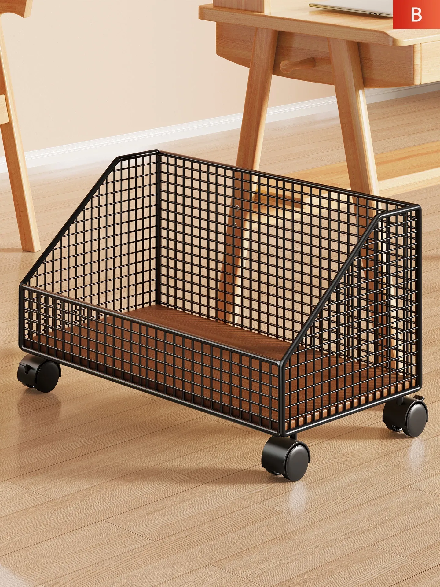 教室用便利な書籍収納ボックス - デスクサイドに最適なキャスター付きブックラック、学生の教科書やノートをスマートに整理!机下にすっきり収まるサイズで、学びをサポートします。