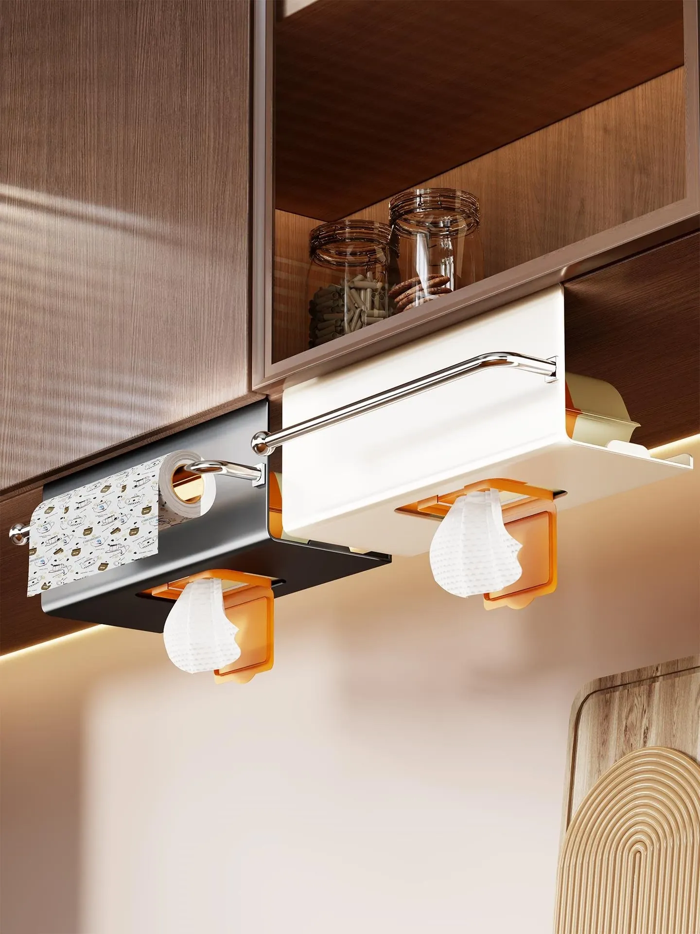 キッチン用ウェットティッシュ収納ボックス - 吊り下げ式ペーパータオルホルダー!スペースを有効活用し、整理整頓をサポート!ハンカチやペーパーをスマートに収納できる便利アイテム!おしゃれで機能的なデザインで、キッチンをスッキリ!